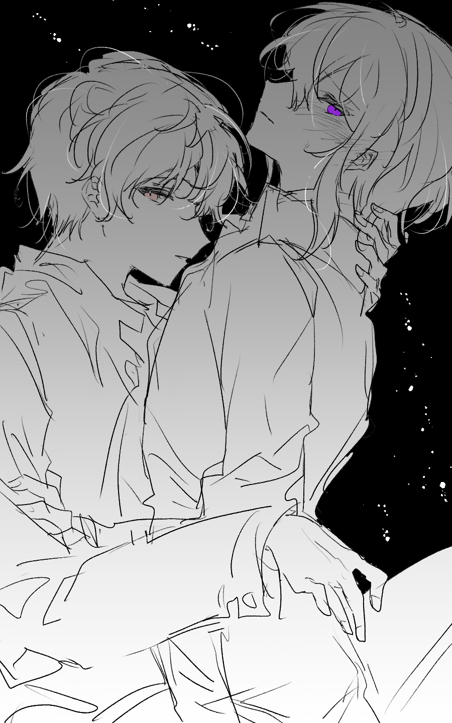 임의의 드레스와 연미복, 마주보며 웃는 표정으로 그립니다.